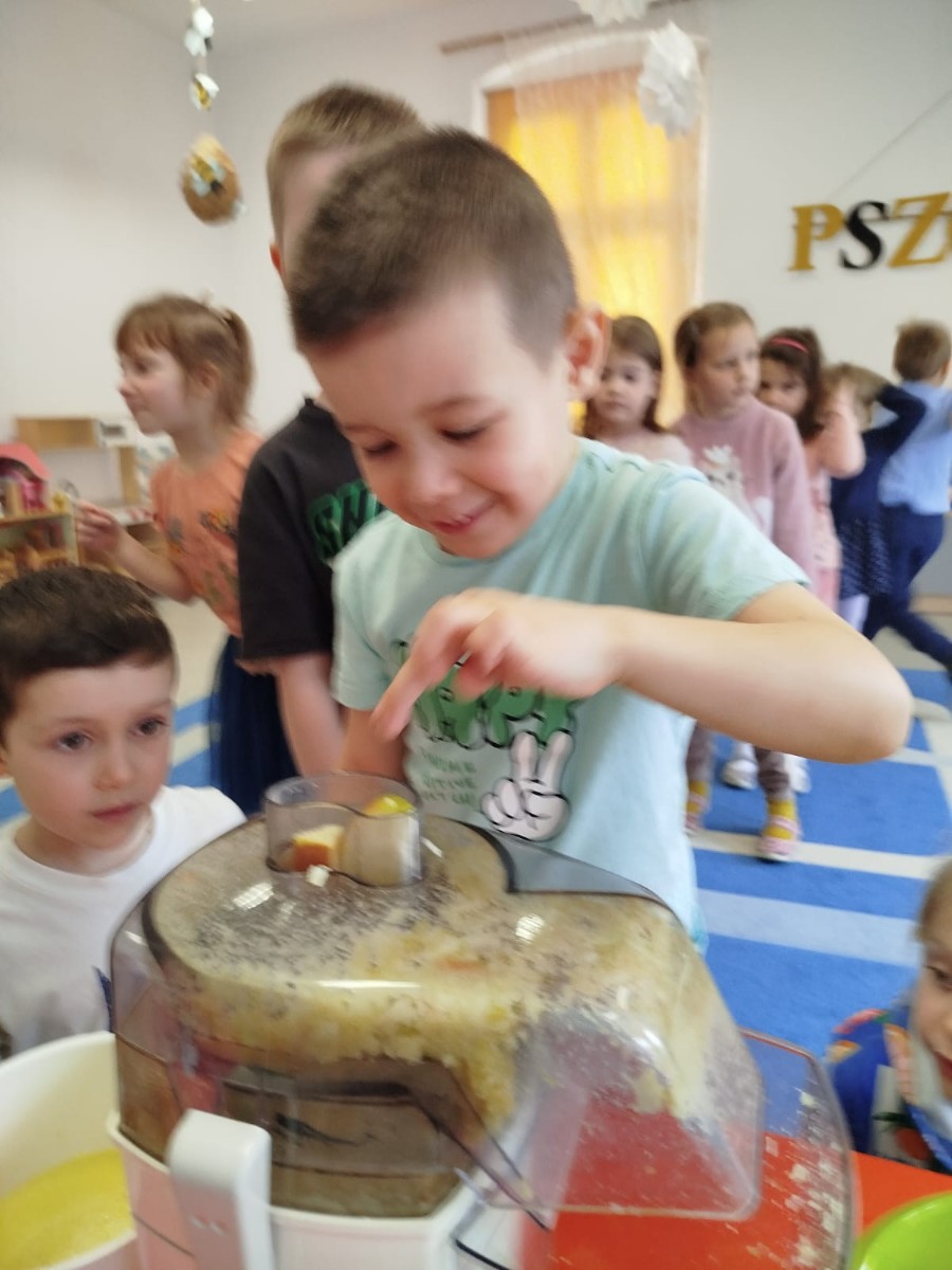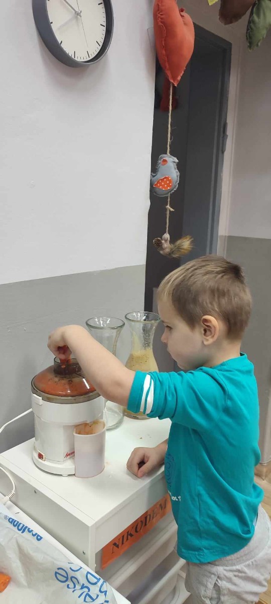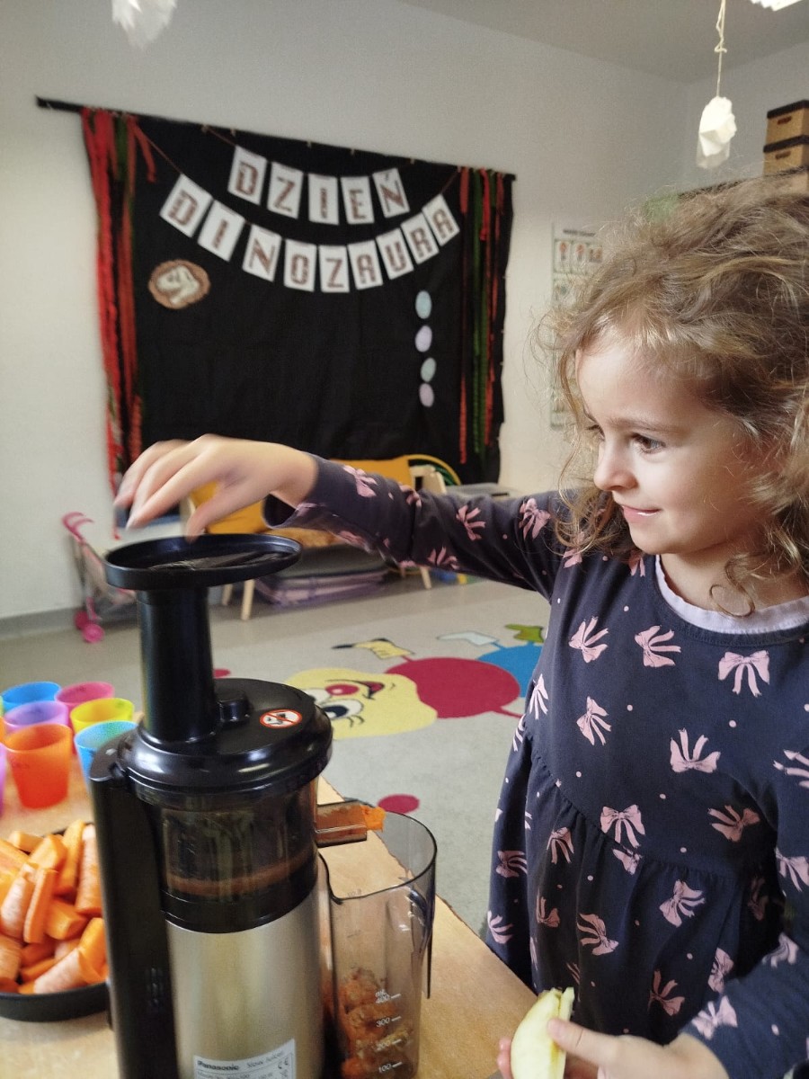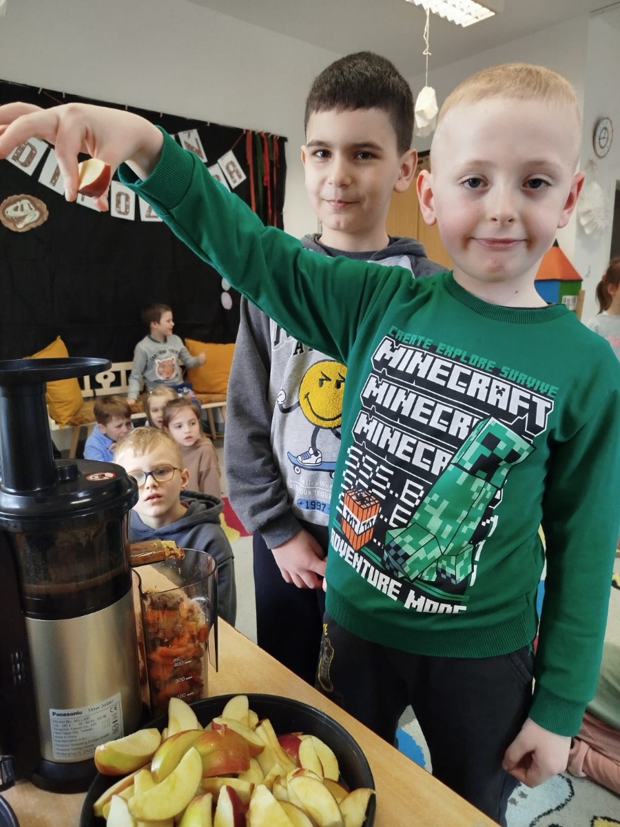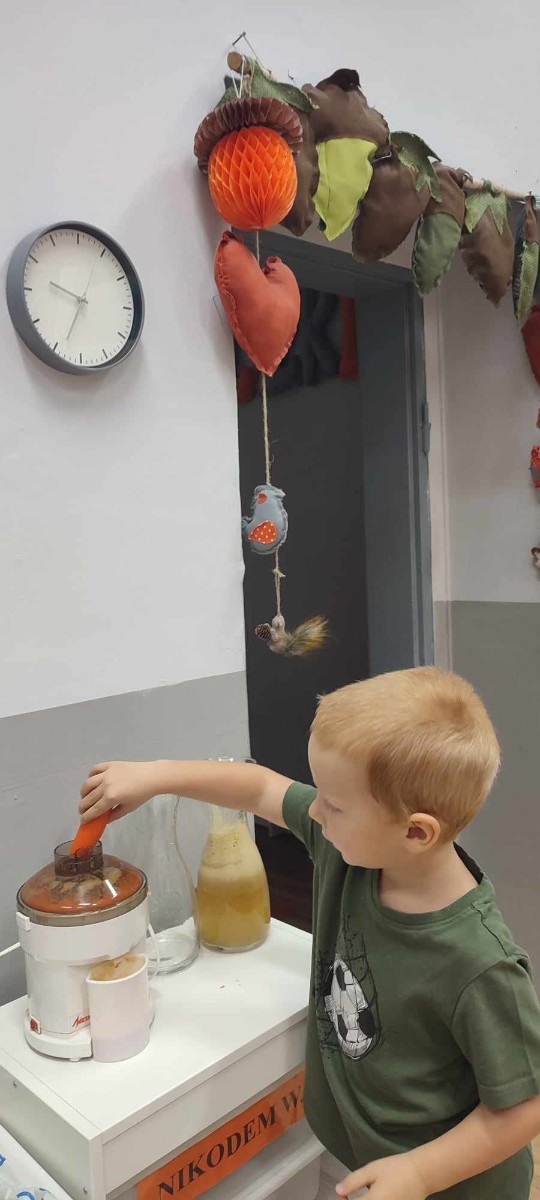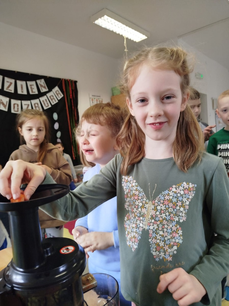 Dzieci samodzielnie, higienicznie i bezpiecznie wykonały soki warzywno- owocowe, które ze smakiem i uśmiechem wypiły. Polecamy