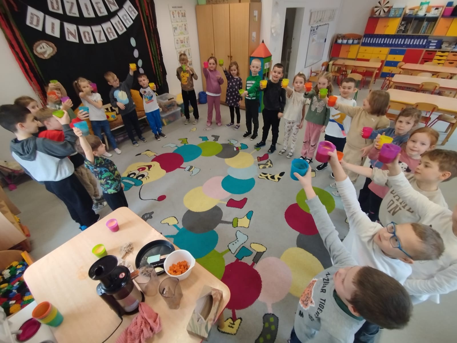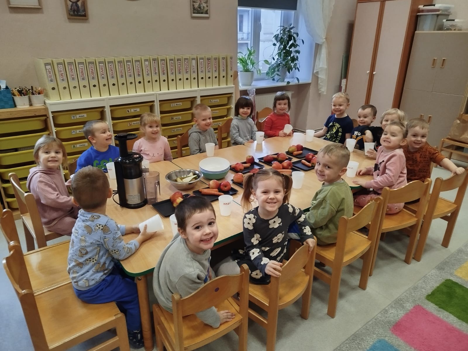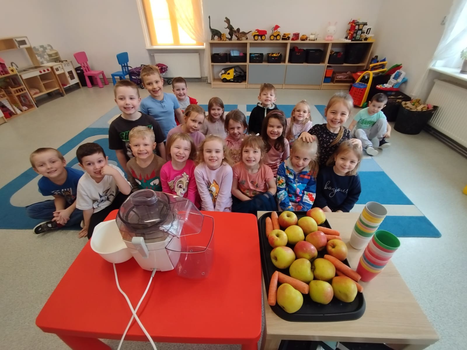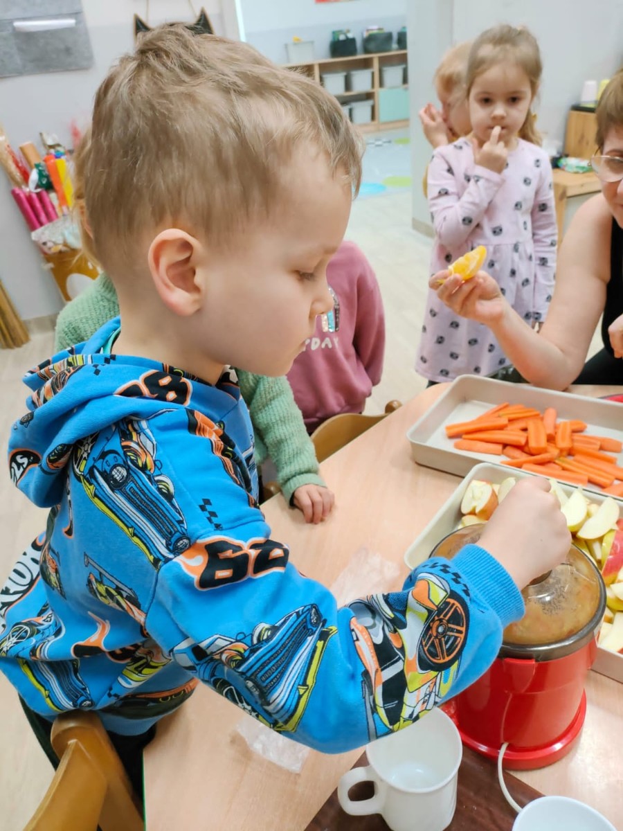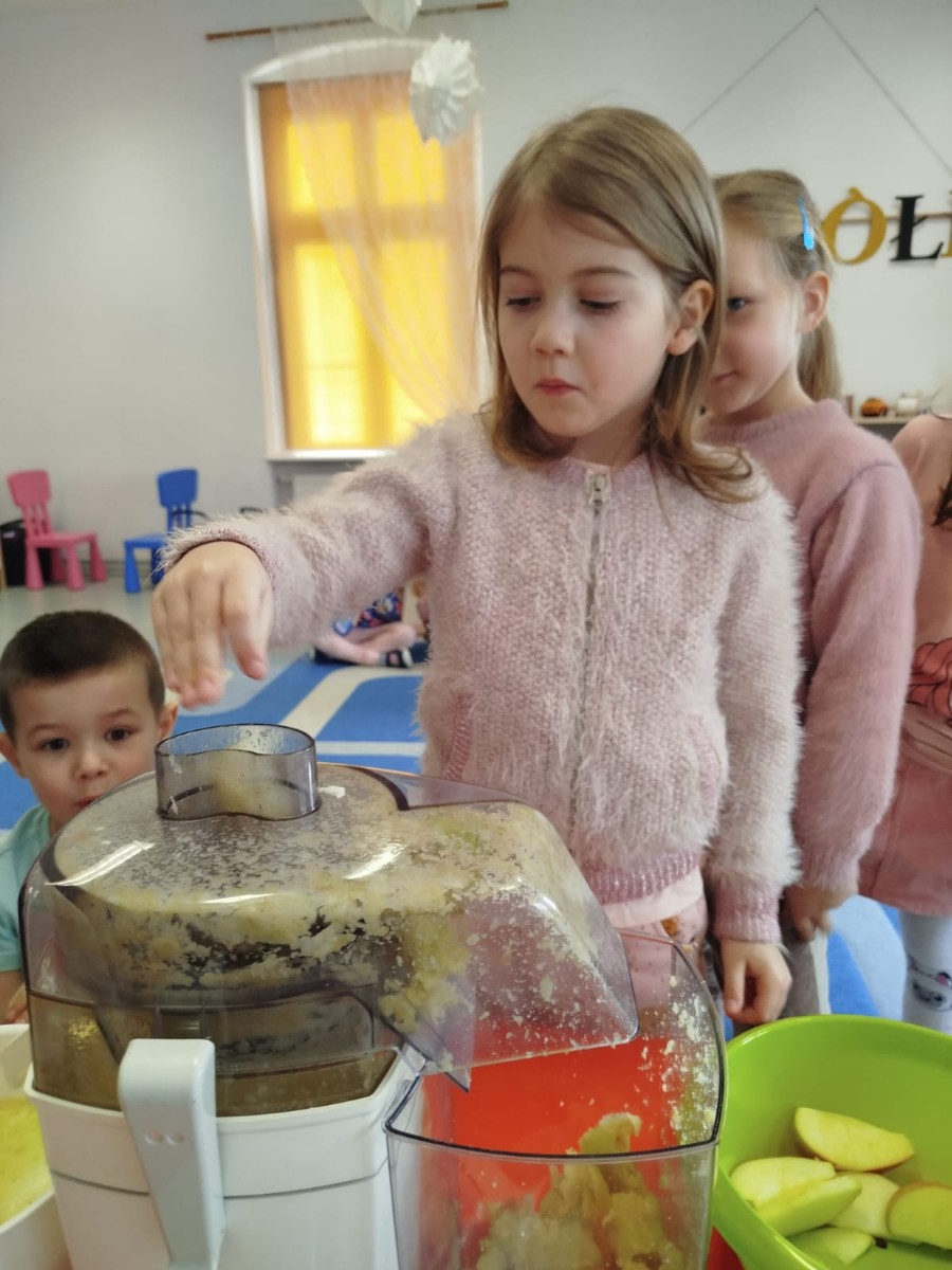 Dzieci samodzielnie, higienicznie i bezpiecznie wykonały soki warzywno- owocowe, które ze smakiem i uśmiechem wypiły. Polecamy