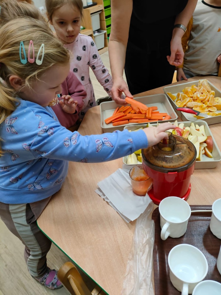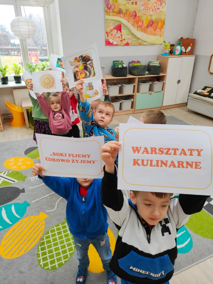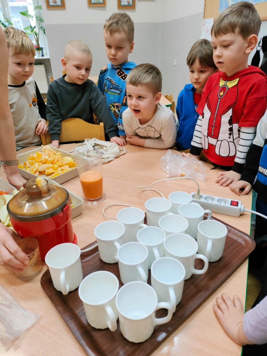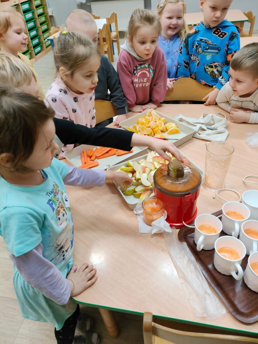 W dniach 25-28 lutego, w naszym przedszkolu ( ul. Chopina 10) odbyły się warsztaty kulinarne pod hasłem "Soki pijemy, zdrowo żyjemy", których celem było propagowanie zdrowego stylu życia, zdrowego odżywiania.