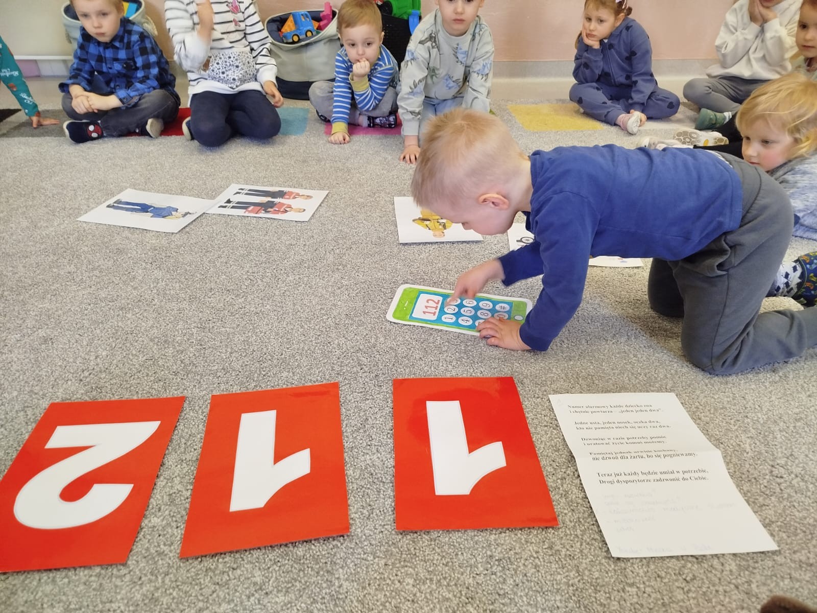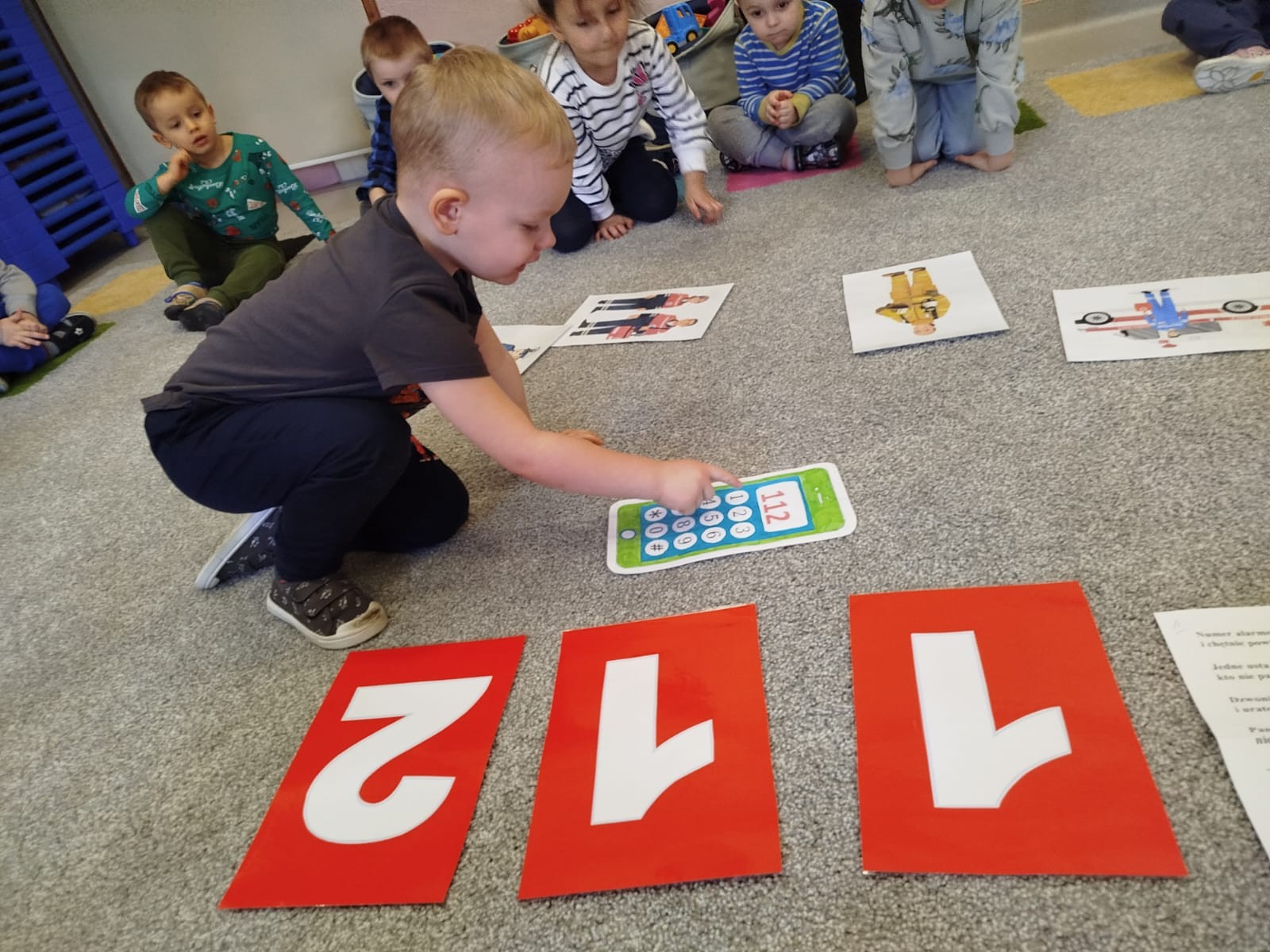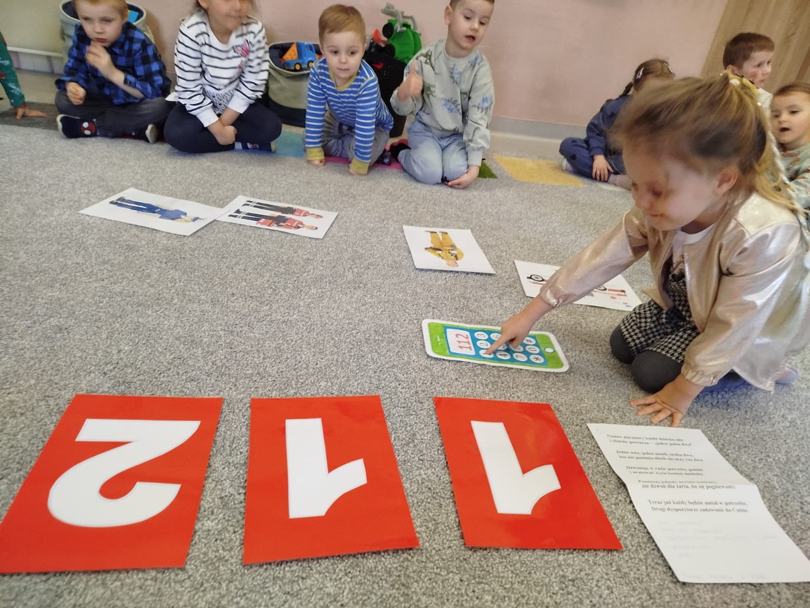W Grupie Biedronek i Wiewiórek odbyły się zajęcia z pierwszej pomocy, podczas których głównym tematem był Numer alarmowy 112.