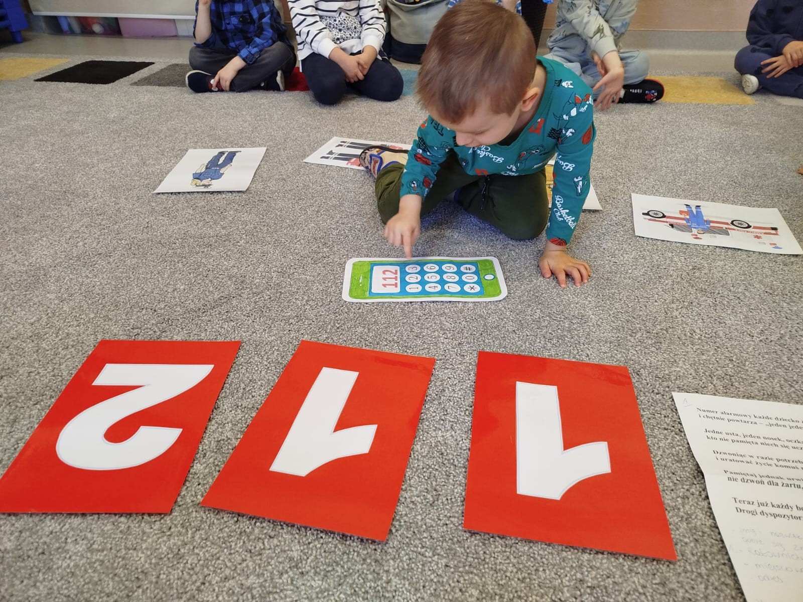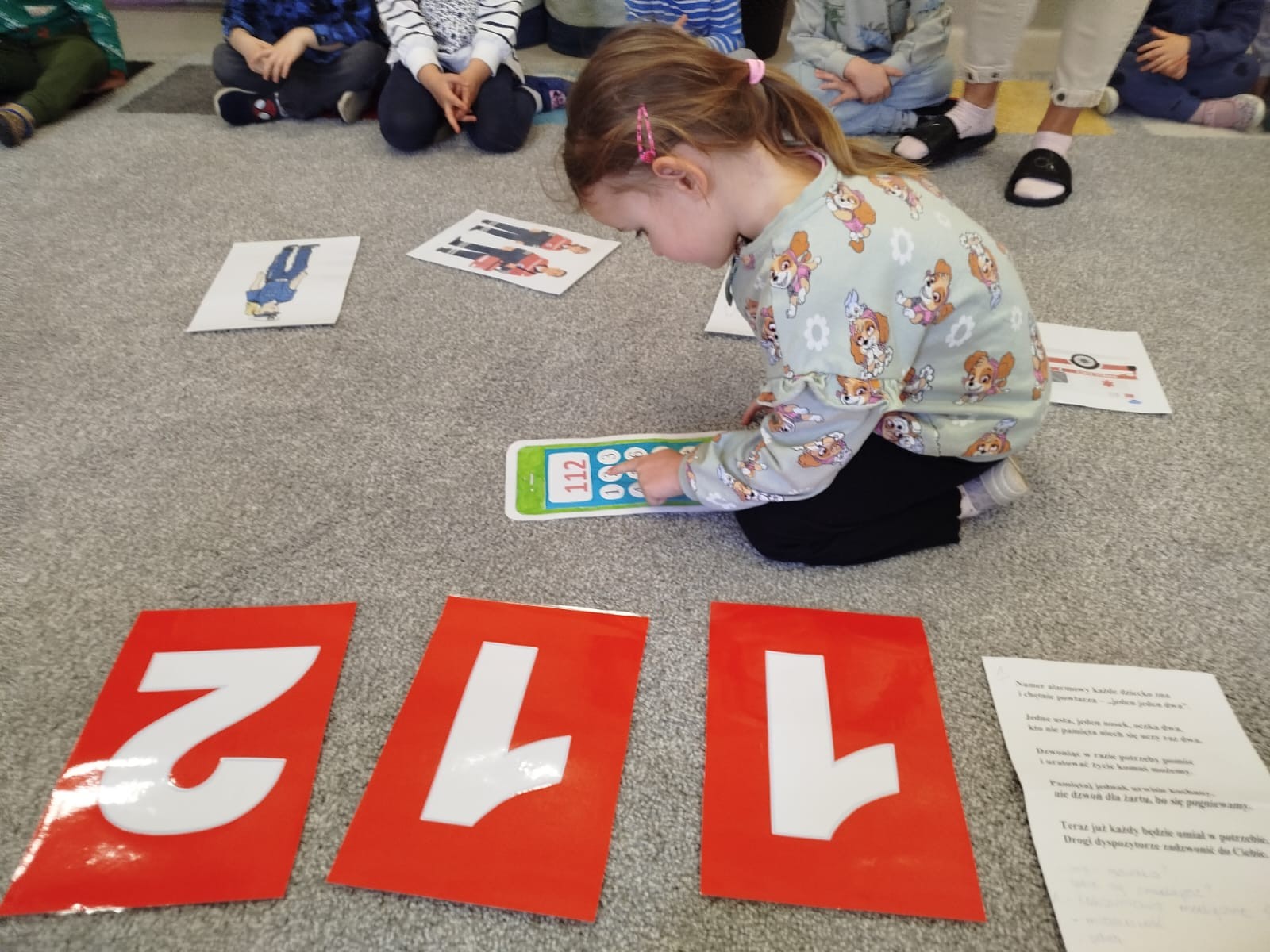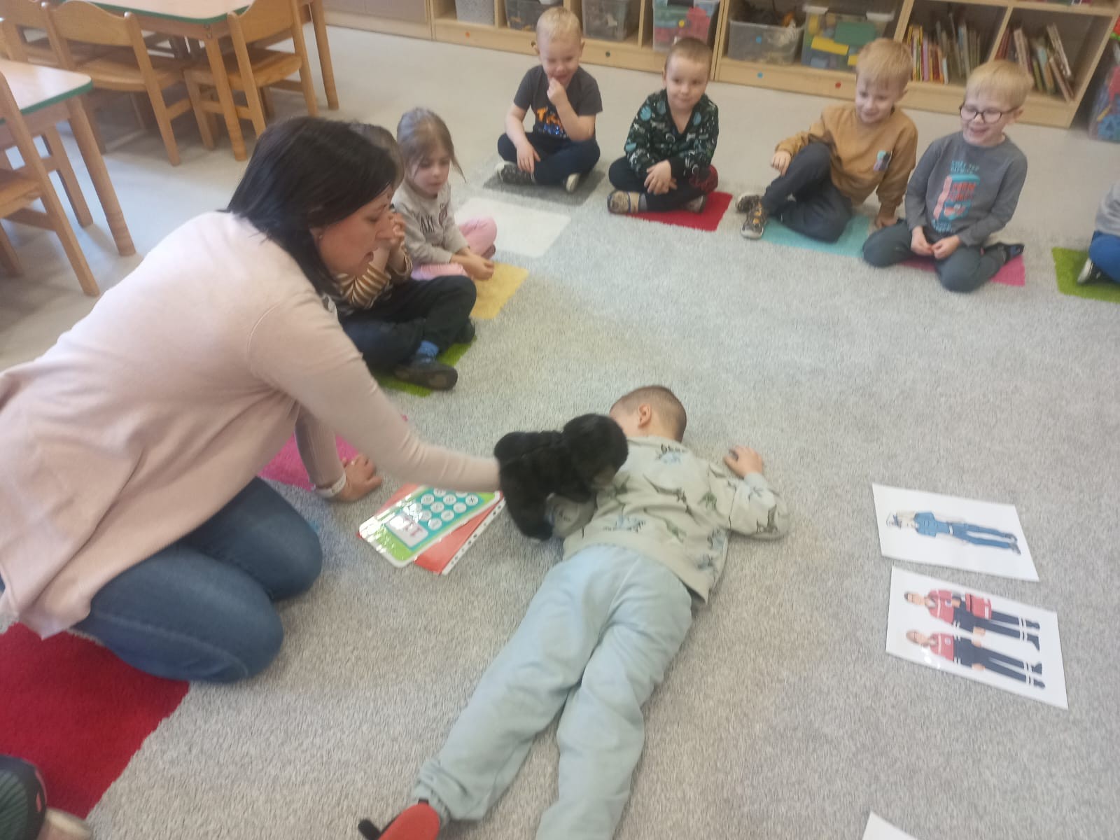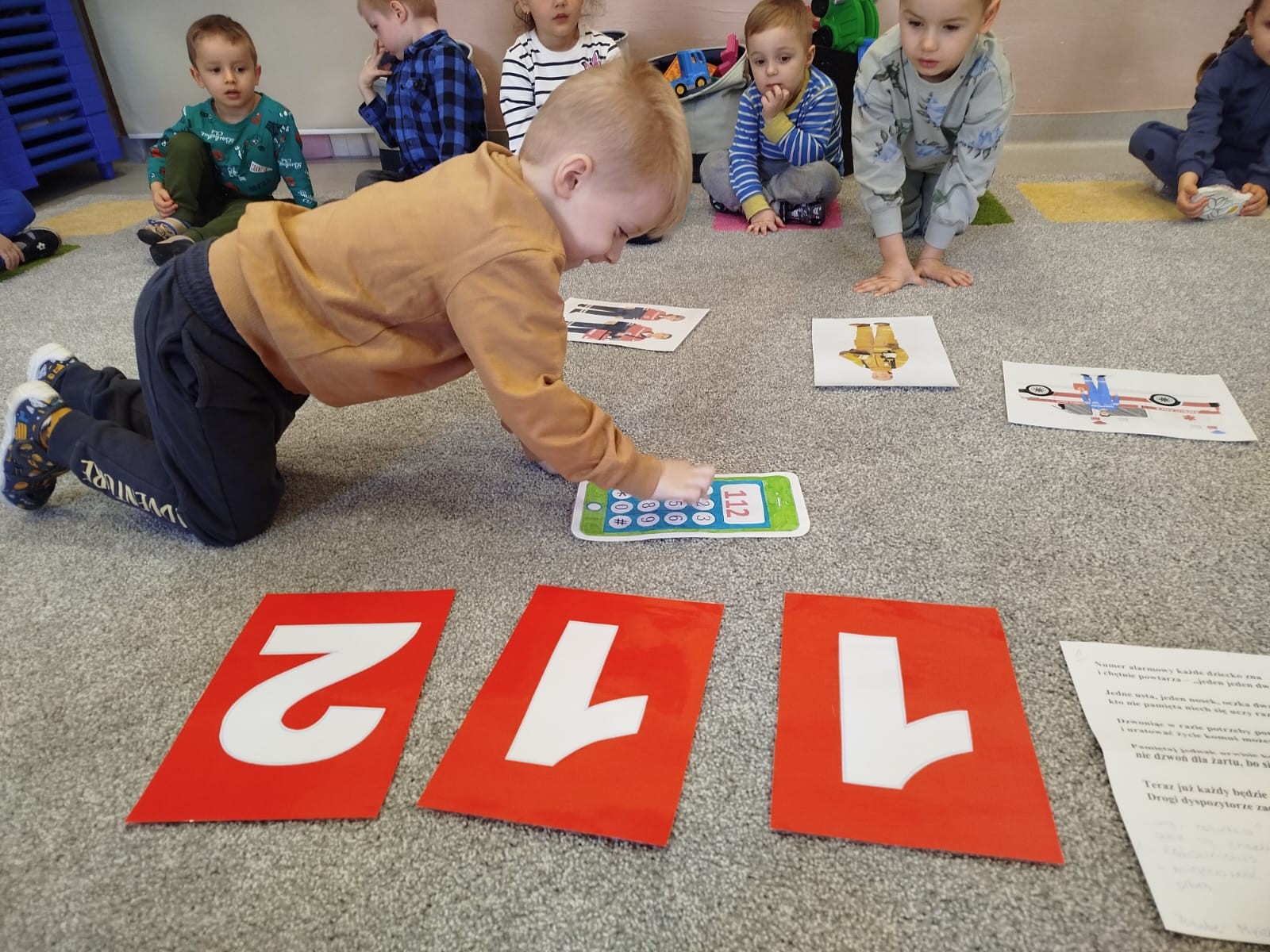 W Grupie Biedronek i Wiewiórek odbyły się zajęcia z pierwszej pomocy, podczas których głównym tematem był Numer alarmowy 112.