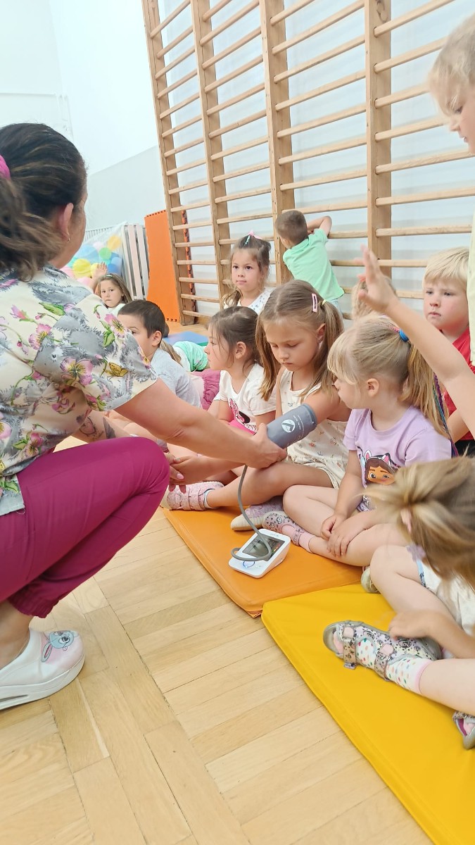 Dzieci mogły posłuchać, jak bije ich serduszko przez stetoskop, a także zobaczyć, jak mierzy się ciśnienie i cukier. Przedszkolaki były bardzo zainteresowane tymi czynnościami i z uśmiechami na twarzach angażowały się w każdą z aktywności.