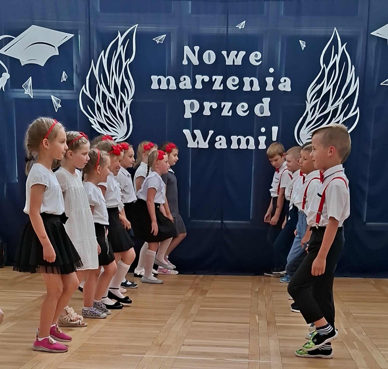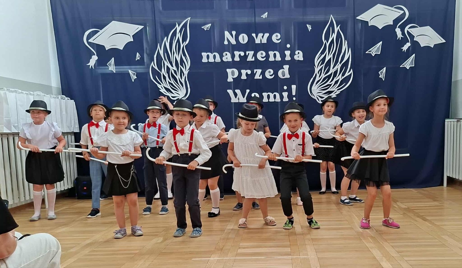 Uroku występom dodał również taniec z laskami, który zachwycił zgromadzoną publiczność. Nie zabrakło podziękowań. Skierowano je do rodziców za zaangażowanie i współpracę, a szczególne wyrazy wdzięczności otrzymała przewodnicząca Rady Rodziców.