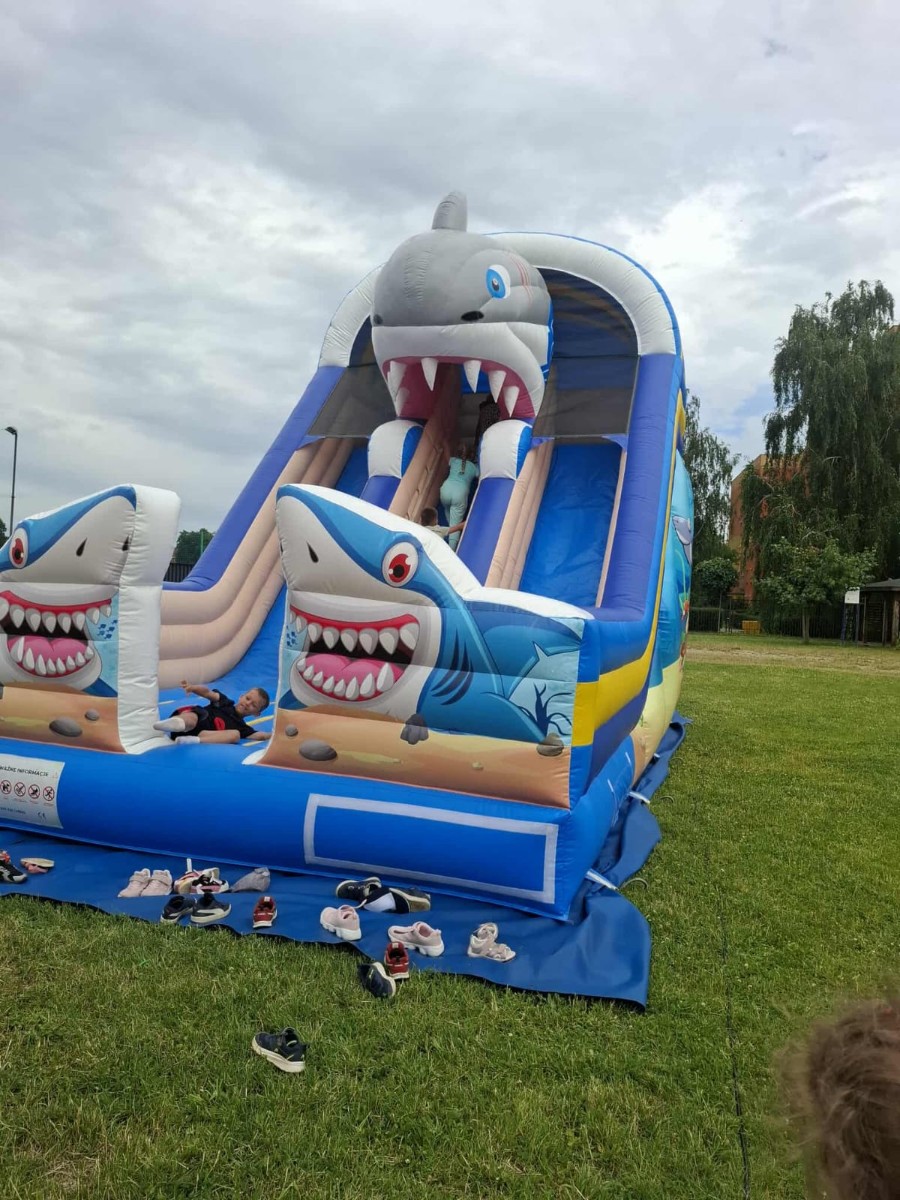 Wszystkie dzieci otrzymały pamiątkowe dyplomy i upominki na zakończenie swojej przedszkolnej przygody. Po części oficjalnej na dzieci czekała niespodzianka- piękny dmuchaniec ufundowany przez rodziców, który dostarczył wiele radości.