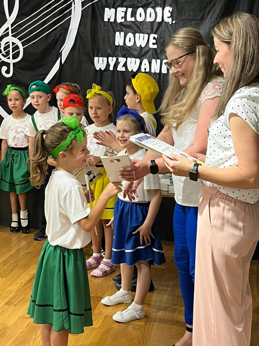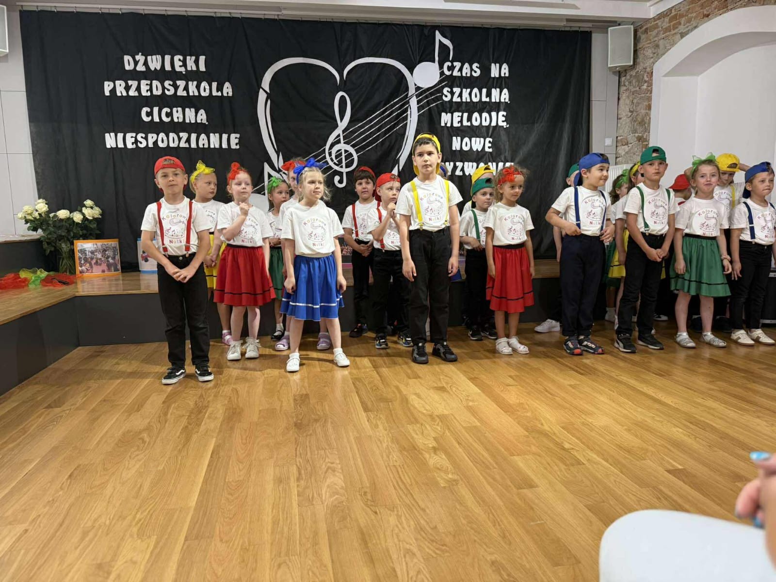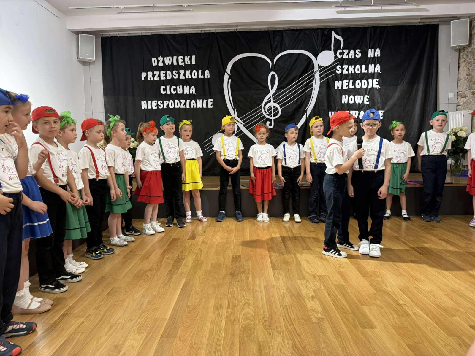 Tymi słowami dzieci z grupy "KOLOROWE NUTKI" pożegnały przedszkole, Panią Dyrektor, grono pedagogiczne oraz wszystkich pracowników przedszkola. Minął czas przygód, zmagań i radosnej zabawy. Zostały piękne wspomnienia, które przywołano podczas przedstawienia na zakończenie roku przedszkolnego. Dzieci wróciły pamięcią do pierwszych chwil spędzonych w przedszkolu, wspólnych wycieczek, występów i zabawnych sytuacji z życia grupy, a przy tym zatańczyły i zaśpiewały wywołując łzy wzruszenia wśród publiczności.