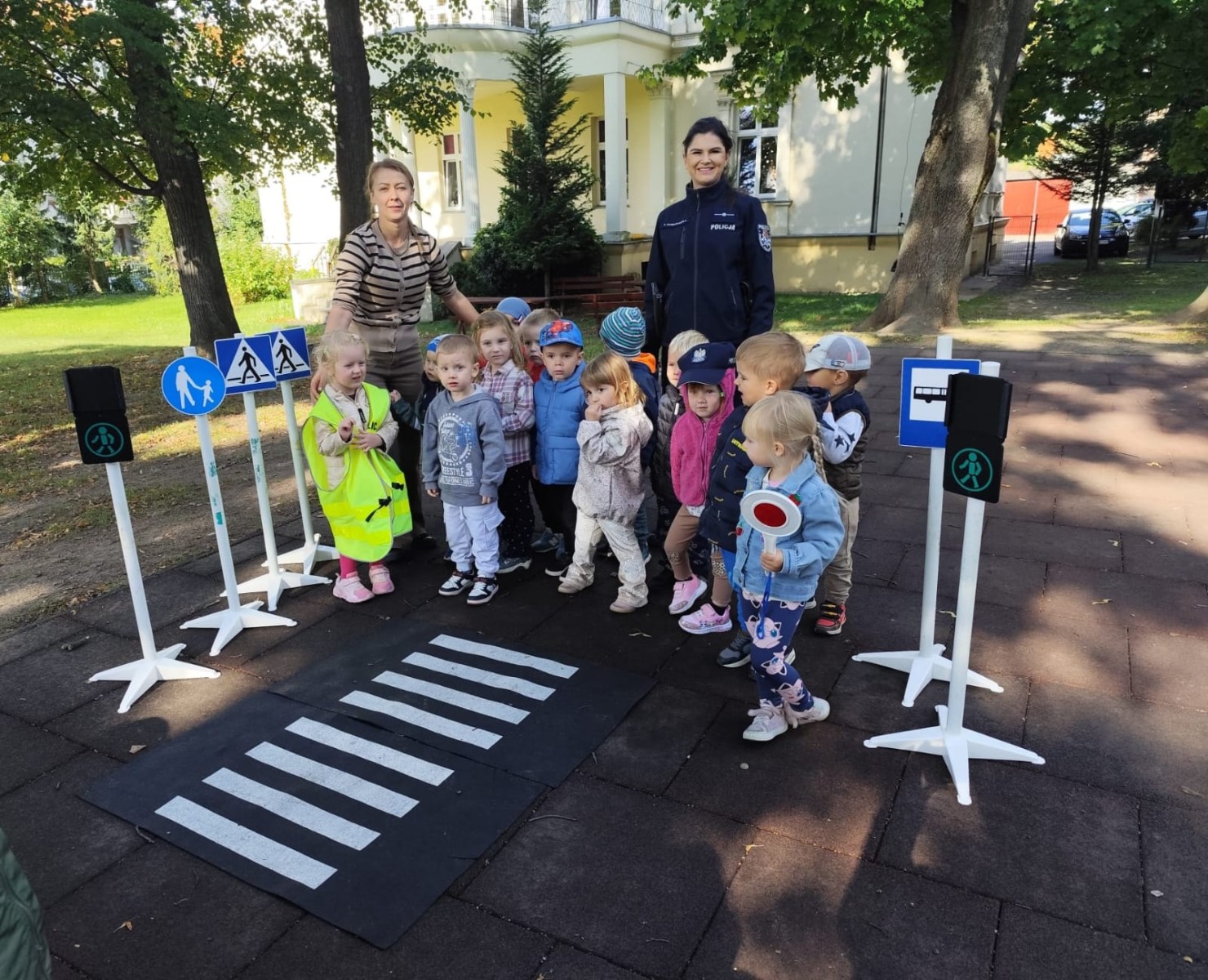 Maluchy dowiedziały się, jak korzystać z sygnalizacji świetlnej i dlaczego należy uważnie obserwować znaki na drodze. Ćwiczyły też prawidłowe przechodzenie przez pasy, przypomniały sobie ważne numery alarmowe i poznały korzyści płynące z noszenia odblasków.