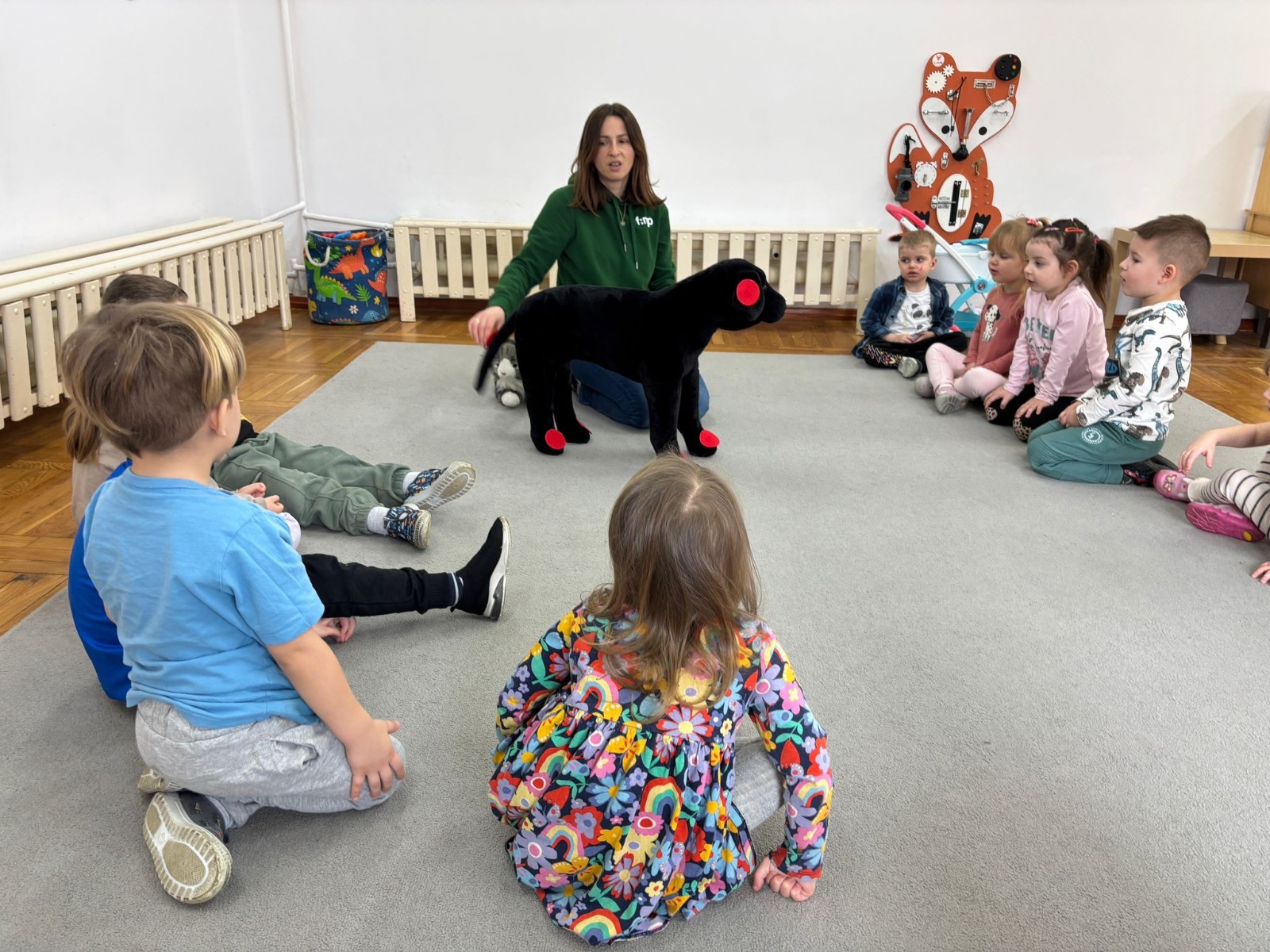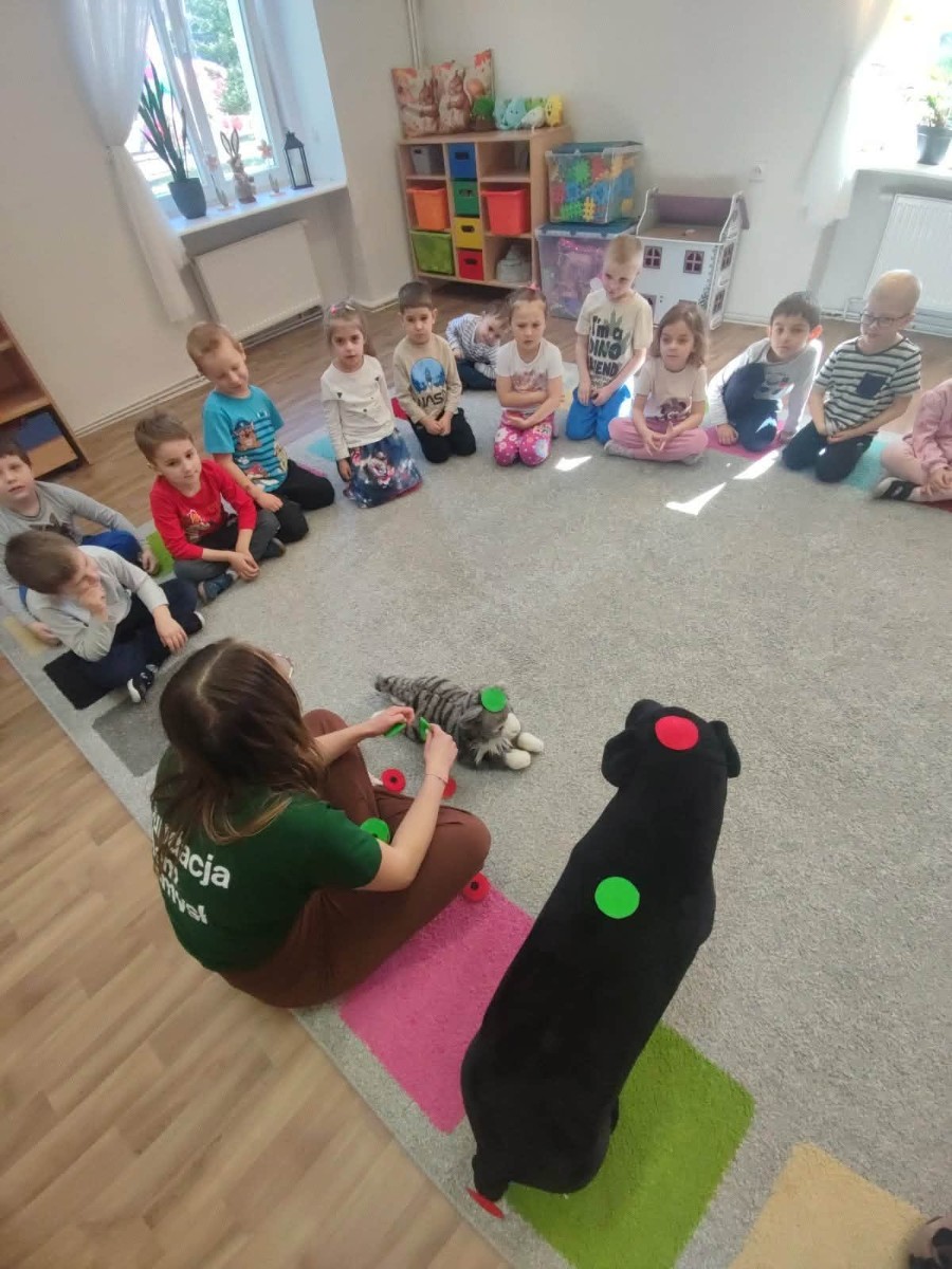 Podczas spotkania przedszkolaki dowiedziały się, jak należy zachowywać się w obecności zwierząt, jak rozpoznawać ich sygnały ostrzegawcze oraz dlaczego nie wolno podchodzić do nieznanych zwierząt bez zgody właściciela.