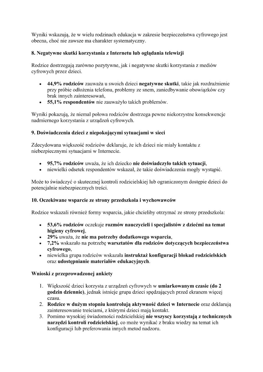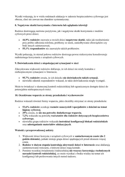 Dziękujemy wszystkim Rodzicom za zaangażowanie oraz poświęcony czas na wypełnienie ankiety. Zebrane odpowiedzi stanowią dla nas niezwykle cenne źródło informacji, które pozwoli lepiej planować i dostosowywać działania edukacyjne oraz profilaktyczne w tym obszarze.