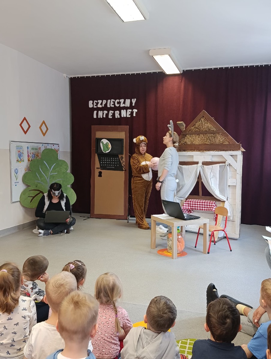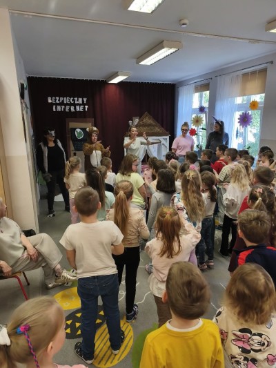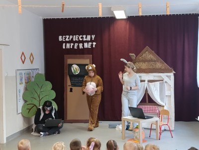 Największą atrakcją był teatrzyk „Króliczek w świecie internetu”, przygotowany przez nasze nauczycielki. Spektakl w ciekawy i zrozumiały sposób pokazał najmłodszym, na co należy zwracać uwagę podczas korzystania z sieci.