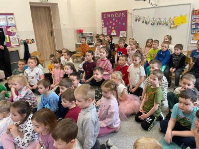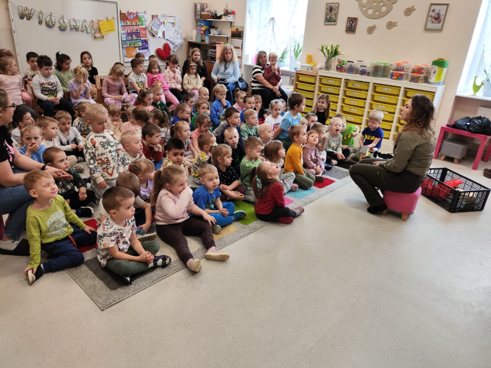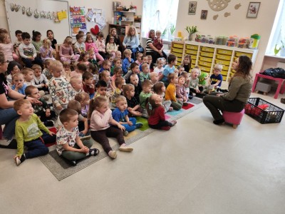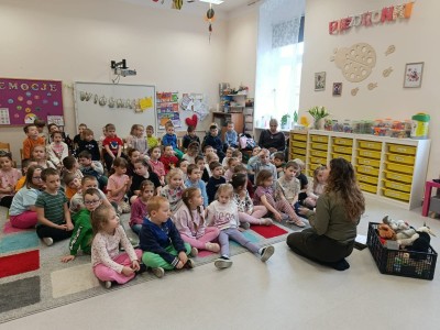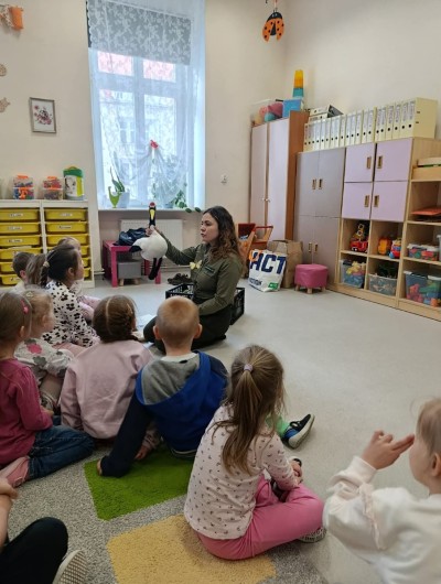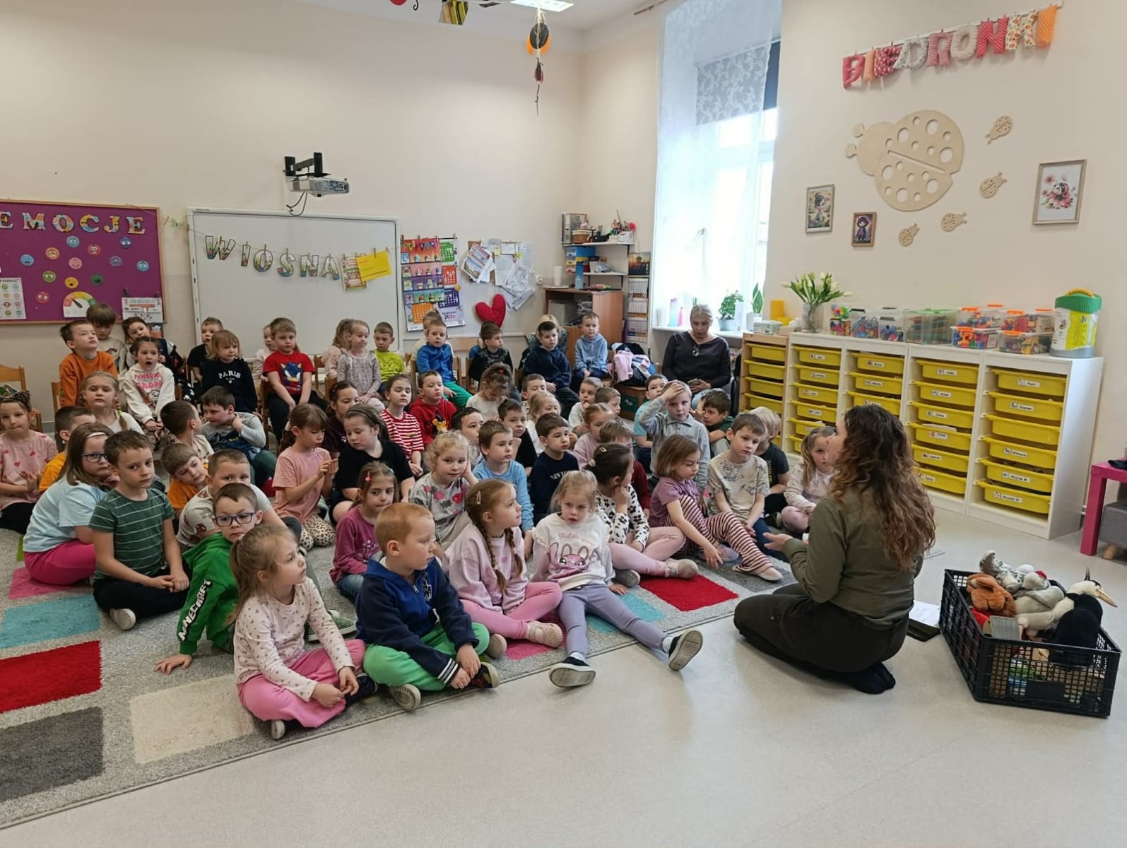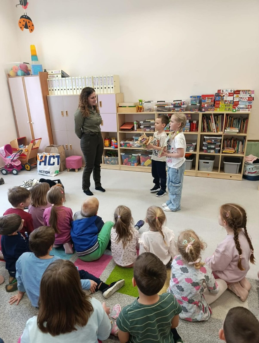 Podczas spotkania przedszkolaki miały okazję dowiedzieć się wielu interesujących informacji o zmianach zachodzących w przyrodzie wraz z nadejściem wiosny. Pani Leśnik opowiedziała o ptakach, które wracają do Polski po zimie, a także o tych, które pozostają z nami przez cały rok. Dzieci z zaciekawieniem słuchały również o zwierzętach budzących się ze snu zimowego, takich jak niedźwiedzie czy jeże.